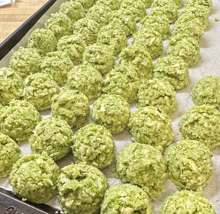 Prep for success. Find recipes for foods that you enjoy and consider prepping ahead to have ready-ish foods at your disposal. A couple of years ago I found this recipe for Jalapeno Cheddar Broccoli Bites. I made a few tweaks so it would be even more easy for anyone to grab, bake, and go. If I don't feel like dragging out the food processor I will chop by hand (less dishes later), and use a medium ice cream scoop instead of flattening and cutting. Once formed they go into the freezer on a sheet tray to be frozen solid, then transferred in a gallon freezer bag to keep frozen. Bake at 400 for about 18 minutes. I don't keep an air fryer on the counter so the oven is our go-to.